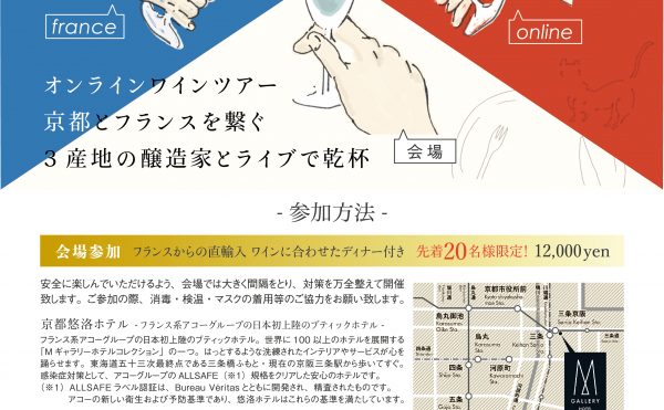 イベント情報eclat-japon バーチャルビジット ”フランス ワイン農家と京都を繋ぐ”バーチャルビジット”フランス ワイン農家と京都を繋ぐ” 海外旅行ができない今、オンラインによる海外旅行、いわゆる『バーチャルビジット』を開催。 フランスワイン農家ブドウ収穫時、オンラインツアーを企画しました。 フラン […]